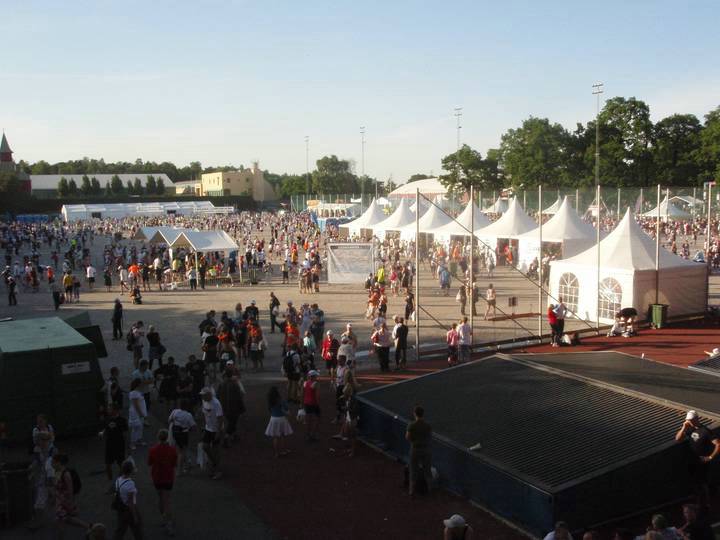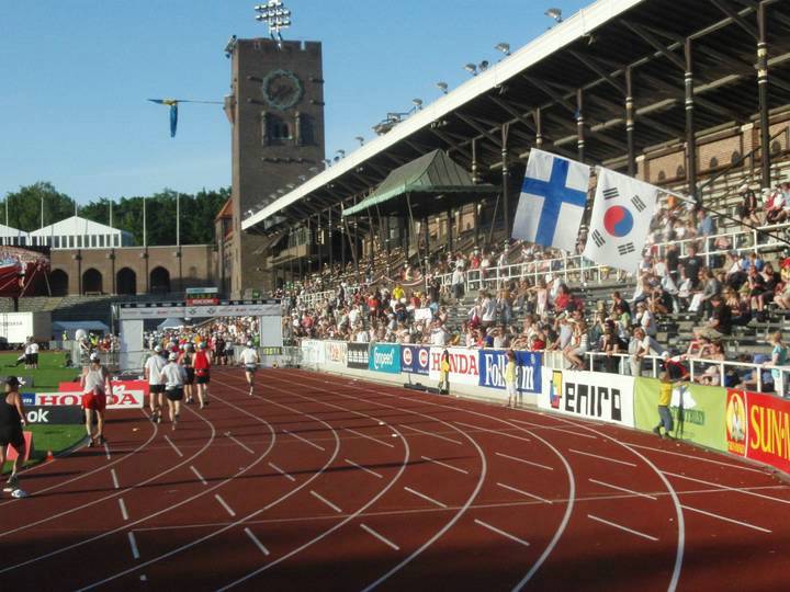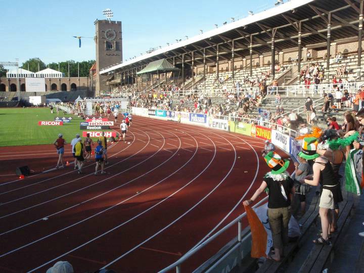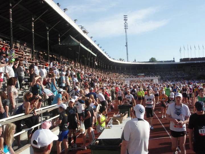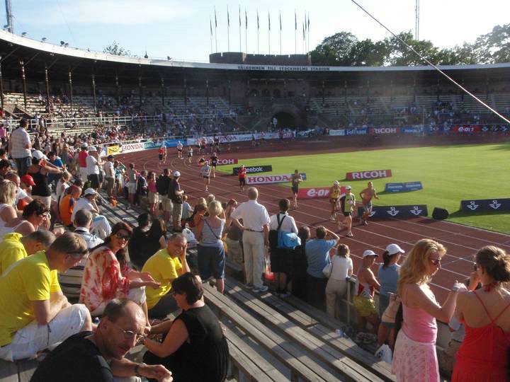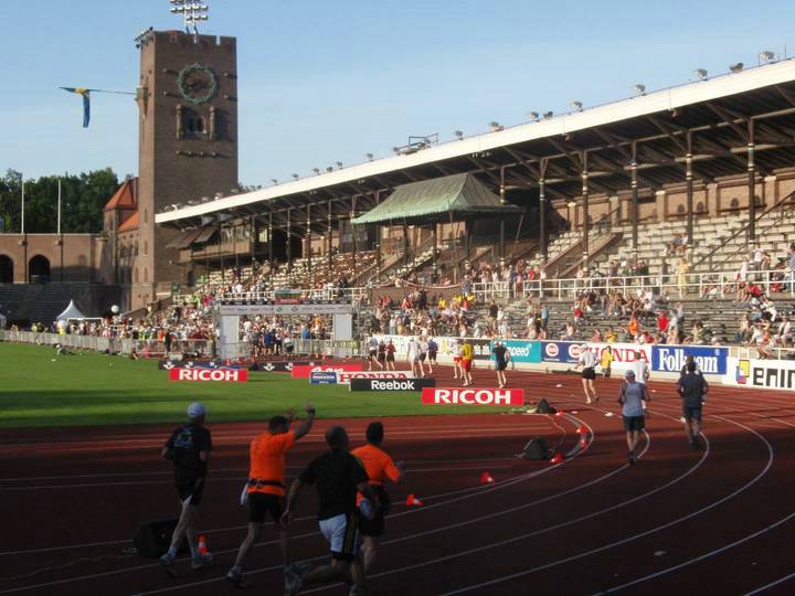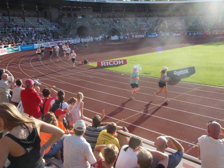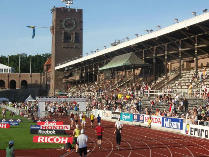 Olympiastadion Stockholm 19.16 Uhr Noch immer ist die Stimmung in der Arena riesig und noch immer sind die Sitzplätze gut belegt. Der Strom an Läufern wurde hingegen jetzt allmählich dünner. |