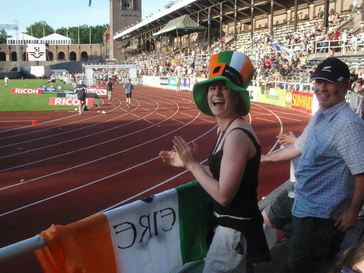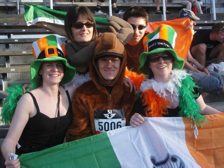 Ein Foto mit ein paar Fans aus Irland, die mich schon auf der Strecke mehrfach gesehen und dann im Olympiastadion wieder- gefunden hatten. |