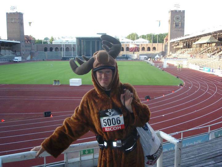 Während die Party dort weiter ging, machte ich mich auf den Weg zurück ins Olympiastadion. Das Elch-Kostüm hatte ich immer noch an, da ich befürchtete, mich zu erkälten. |