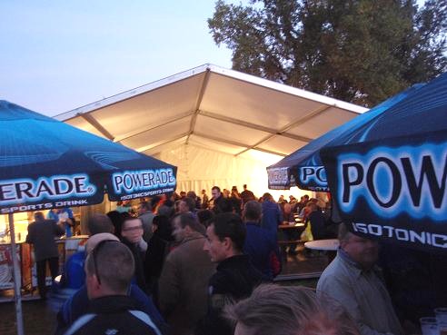 Przemiescie 9.41 Uhr / Kilometer 7 Nach 39 Minuten war ich wieder am Start angekommen. Kurz hinter dieser Verpflegungsstelle stand der Startbogen. Nur die ganzen Toiletten waren schon abgebaut. Zu dumm... so eine hätte ich gerade mal gebraucht. |
