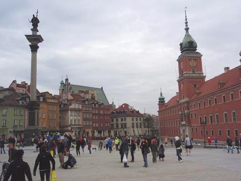 Zamkowy 8.25 Uhr Bei grauem Himmel gab es skeptische Mienen bei den rund 3000 Teilnehmer, die sich nach und nach hier auf dem großen Platz in der Altstadt (Stare Miasto) vor dem Warschauer Königsschloß versammelten. Wurde es doch viel unangenehmer als der Wetterbericht sagte? |