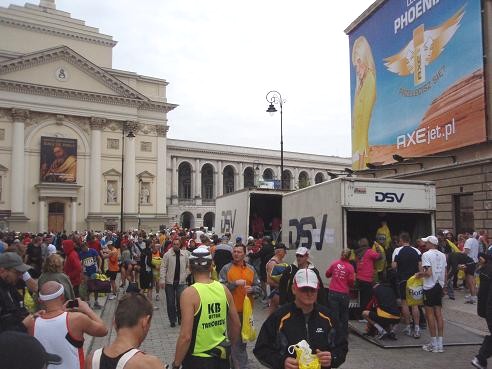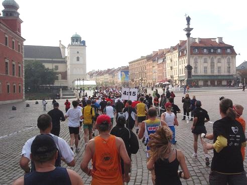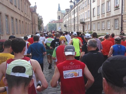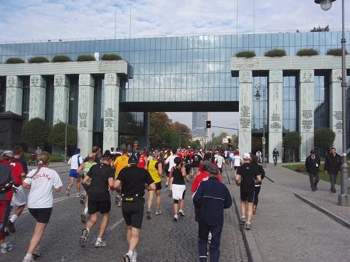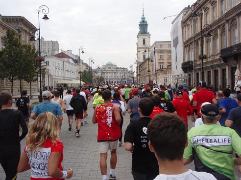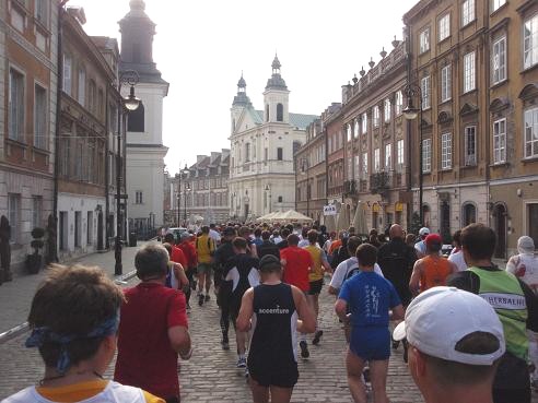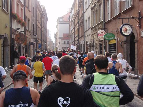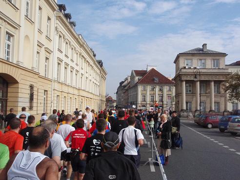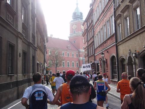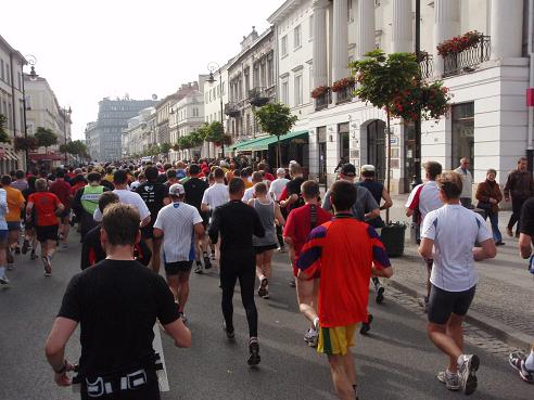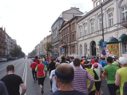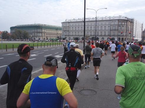 / plac marsz. J. Pilsudskiego 9.20 Uhr / Kilometer 3 Mein Anfang war langsam. Erst hing ich in der Masse auf der engen Einkaufsmeile fest, dann wollten die Beine nicht schneller. ich hatte mir zwar drei Wochen nach meinem Marathon-Rekord in Oldenburg für Warschau nichts besonderes vorgenommen (die Woche davor war auch viel zu arbeitsreich gewesen... wenig Schlaf etc.), aber eine sub4 sollte es schon noch ein. |