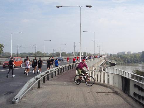 Gdanski 10.27 Uhr / Kilometer 16,0 Nun ging es über die Weichsel auf die Ostseite der Stadt. So ohne Absperrung an den entgegen- kommenden Autos zu laufen war schon etwas beängstigend. Vor allem, wenn man die Fahrkünste der Warschauer schon kennt. Es ging aber alles gut. |