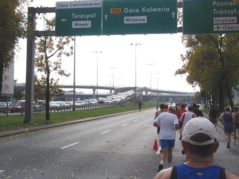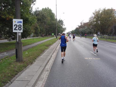 Sobieskiego 11.33 Uhr / Kilometer 28,0 Ich hielt trotz langweiliger Strecke und Radfahrern die Ruhe und lief mein Tempo recht mühelos weiter. Hier waren die Straße nun so breit, wie ich es mir anfangs hin und wieder gewünscht hatte, wenn ich überholten wollte. Hier nun war für die paar Läufer mehr als genug Platz. |