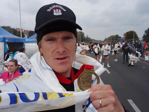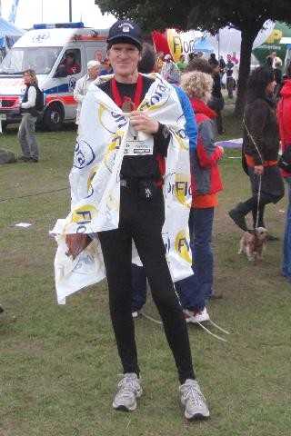 Gdynskie 14.41 Uhr Pawel Mej aus Dziewin in der Nähe von Krakau. Er lief netto wie brutto 5:43:11 Stunden, muß also aus der ersten Startreihe gekommen sein. |