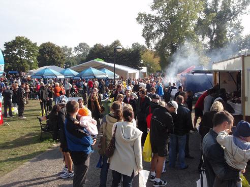 Przemiescie 8.54 Uhr Erstmals hatten sich mehr als 3000 Teilnehmer angemeldet. Es sollen sogar 3500 gewesen sein, von denen aber nur 2750 an den Start kamen. Gefinisht haben 2640. Nicht unwichtig. Am selben Tag fand auch der Berlin-Marathon statt. der ist ja auf gerader Strecke nur 597 Kilometer weg. |