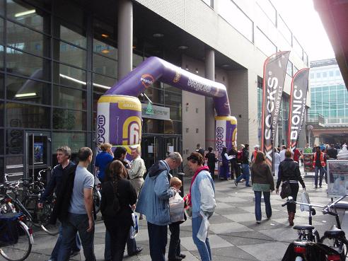 Beursgebouw 12.55 Uhr Wer die Halle dann doch gefunden hatte, durfte erst einmal den gut versteckten Eingang suchen. Aber wenn man dann drin war, dann war alles gut. Jede Menge gratis Kram und Prospekte und einige wirklich gute Angebote bei den Laufklamotten. |