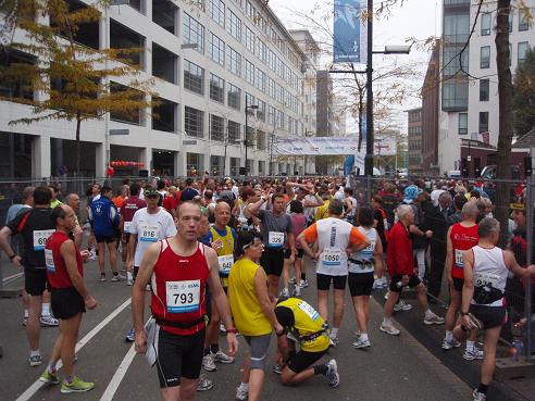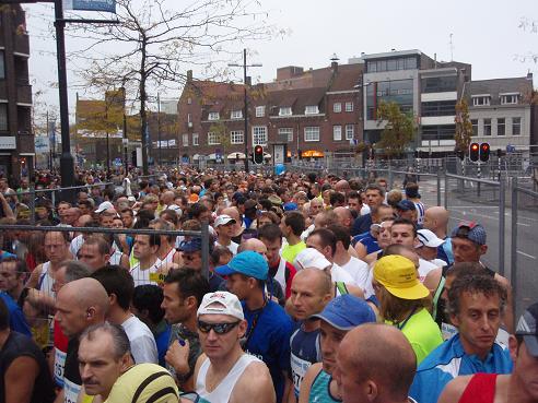 Emmasingel 10.53 Uhr Der Tag find schon komisch an. Statt der angekündigten Sonne war es bitterkalt. Und es KEINE Kleiderbeutelabgabe!!!! Und man hatte mich (warum auch immer) in den Block direkt hinter der Elite und den Läufern der holländischen Meisterschaft gesteckt. So stand dieser massive Block hinter mir... |