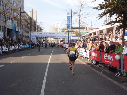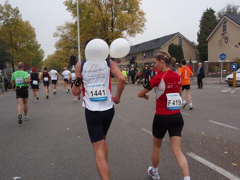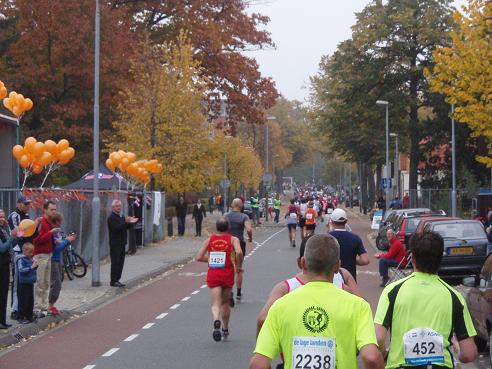 Antoniusstraat 13.52 Uhr / Kilometer 35 Hier nach Km 35 war es dann aber auch vorbei mir der Kraft. Ich konnte den Anschluß nicht mehr halten, egal wie sehr der Ballon- Läufer auch motivierend auf jeden einredete. Einfach nur dranbleiben klingt ja so einfach... |