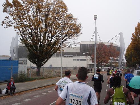 Frederiklaan 12.08 Uhr / Kilometer 12,5 Das Philips Stadion des PSV Eindhoven. So ein wenig Sight- seeing gab es auch, aber so viele visuelle Höhepunkte hatte die Stadt nicht zu bieten. Man konnte sich also ganz auf den Lauf kon- zentrieren. |