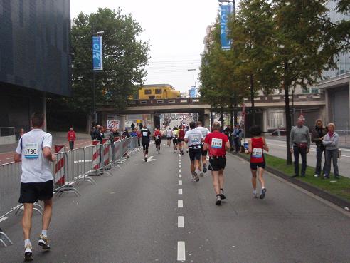 Bekkerslaan 11.32 Uhr / Kilometer 6 Es war recht voll auf der Strecke aber nicht zu voll. Zuschauer gab es in überschaubarer Anzahl, dabei war es ja nicht mal mehr so sehr früh am Morgen. Kilometer 5 nach 25:28 Minuten. Also ein gutes 5:06 Min/Km- Tempo. Bis dahin... |