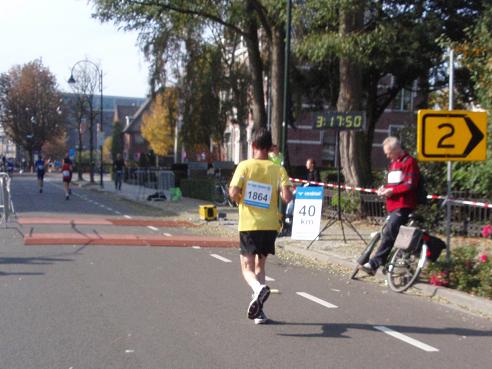 Lieven de Keylaan 13.33 Uhr / Kilometer 31,5 Kurz vor dem Verpflegungsstand der Schock. Plötzlich stürzte unser Ballonläufer. Genau gesehen habe ich es nicht. Ein Helfer hatte dem Läufer neben ihm etwas gegeben und plötzlich knallte er hin. Zum Glück stand er schnell und unver- letzt auf, zog aber (wohl aus Wut) das Tempo für 500 Meter mächtig an, bis seine Gruppe fast geplatzt war, kam dann aber wieder zu uns zurück. Läufer Nr. 2084: Henk Doorten, Runner'sWorldPacingTeam. |