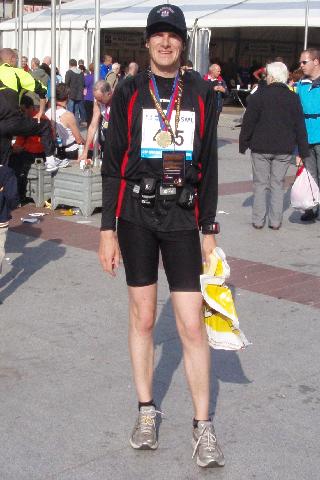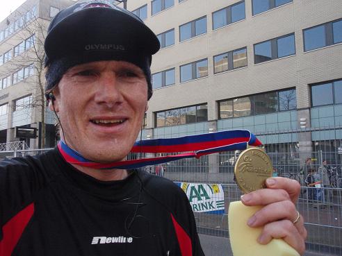 Stadhuisplein 14.35 Uhr Ich setzte mich auf den nächsten freien Stuhl und schnaufte durch. Noch sieben Minuten nach dem Zieldurchlauf hatte ich einen Puls von 140. Kurz vor dem Ziel waren es 194. Das ging schon sehr, sehr langsam zurück. Da ging ich dann lieber zurück uns legte mich eine Stunde ins Bett. Die 3:30-Grenze wollte ich im April 2009 in Hamburg knacken. Das hier hätte ich nicht in den wildesten Träumen für möglich gehalten. |