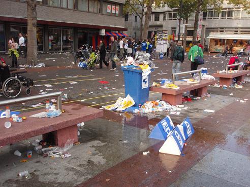 Stadhuisplein 17.31 Uhr Tja, so sieht es dann nach einem Marathon aus. Viel zu tun für die Stadtreinigung. |