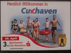 Die dritte Auflage des Marathons in Cuxhaven. Trotz reichlich Unstimmigkeiten und Streitereien wegen der Straßensperrungen scheint der Marathon in Cuxhaven angekommen zu sein. Schon vor dem Start der dritten Auflage wurde im Internet für 2010 der vierte Marathon angekündigt. Gut so!! |