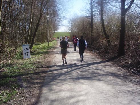14.05 Uhr Kilometer 35 Noch weniger Läufer. Noch mehr Spaziergänger (... und Hunde!!). Und noch kälterer Wind. Ich nahm ein wenig tempo raus und kämpfte nicht mehr gegen den Wind an. Ich war sowieso schon viel schneller unterwegs, als ich mir erhofft hatte. |