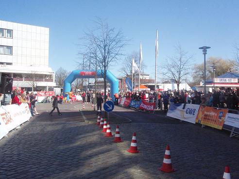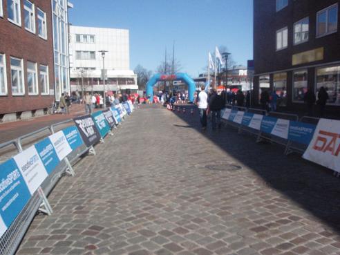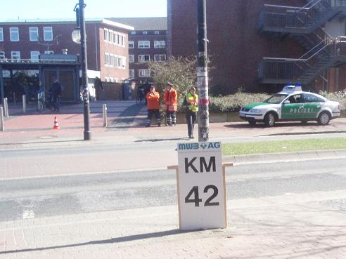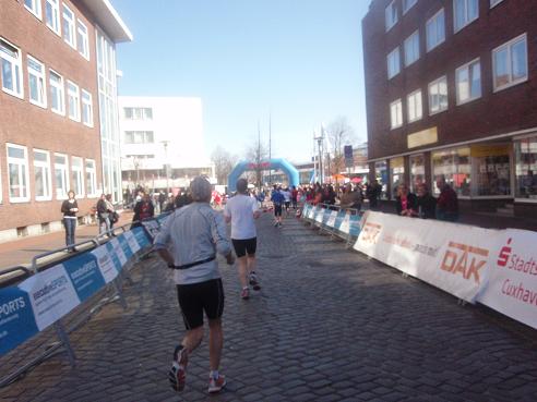 Cuxhaven, 14,41 Uhr, Kilometer 42 Jetzt nur noch einmal über den Parkplatz der Stadtsparkasse, dann war es geschafft. |
