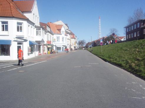 11.28 Uhr Kilometer 5 Und schon hatte ich zum ersten Mal die Wendemarke am Strandhaus Döse erreicht. Diese enge Linkskurve und der kurz danach folgende Deich machten meinen Knien am meisten Sorgen. |