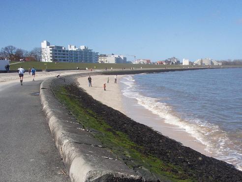 Das sah nun nicht wie Regen oder Sturm aus, auch nicht wie 9°C. Es waren aber auch nicht 23°C. Sehr schönes Laufwetter mit um die 14°C, allerdings einem sehr frischen Nordwind, der auf den vier Kilometern an der Küste steif von vorne wehe würde. So blieb ich trotz Sonne in meiner langen Kleidung. |