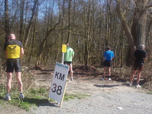12.45 Uhr Kilometer 20 Gut versteckt und doch gefunden. Im Gegensatz zu den Vorjahren standen die Kilometerschilder 2009 alle an den richtigen Stellen. Die zweiten 10 Km lief ich in 52:17 Minuten. |