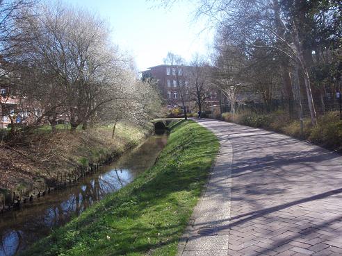 11.54 Uhr Kilometer 10 Schönes idyllisches Stückchen zwischen der Einfahrt zum Stadtzentrum und dem Parkplatz der Stadtsparkasse. Nur diese enge Kurve hinter der Brücke (20 Meter zuvor) erinnerte mich gleich wieder an meine Beine... |