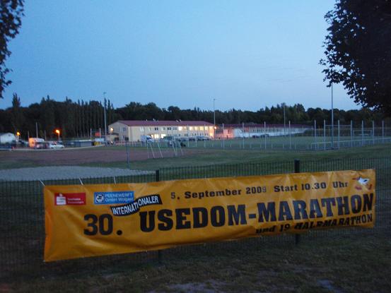 Hier auf der Sportanlage des FC Rot- Weiß Wolgast ist die Startnummer- ausgabe und das Organisationsbüro zu finden. Selbst für den relativ kleinen Ort Wolgast ist der Sportplatz recht gut versteckt, aber der Weg ist gut ausgeschildert und auch im Dunkeln noch zu finden. |
