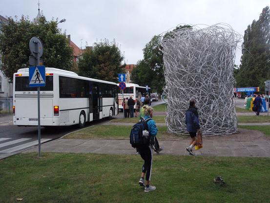 Eine Warteschlange bei der Gepäck- abgabe kannte ich bisher nur aus Hamburg. Immerhin wurde dafür gesorgt, dass die Klamotten nach Wolgast zum Ziel gebracht wurden. Ob für die Polen, welche gut 50% der Teilnehmer stellen, auch ein Rück- transport organisiert war, weiss ich nicht. |