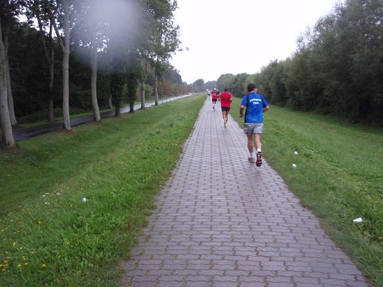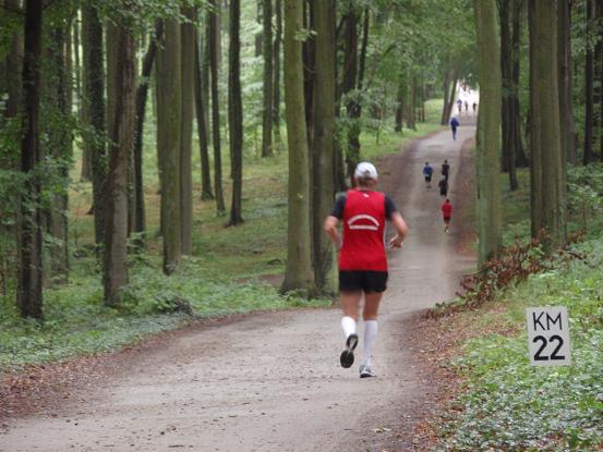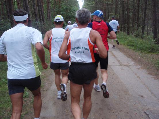Richtung Ahlbeck Kilometer 3 / 10.51 Uhr Die ersten Kilometer hielt ich mich an die Leute vom Supermarathon von Kalisz (100 Kilometer). Nach einer kurzen Pinkelpause im Wald zog ich dann aber vorbei. Ich hatte das Tempo am Anfang sehr niedrig gehalten (um 5:20 Min/Km), dann war ich warm genug. |