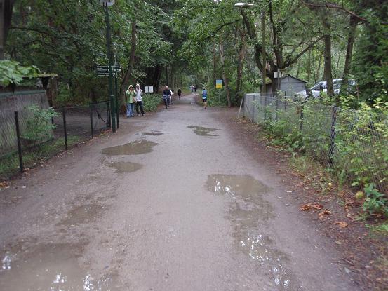 Zeromskiego Kilometer 1,8 / 10.45 Uhr Am Ende von Swinoujscie ging es gleich in den Wald hinein. Zunächst hier auf der Straße, kurz darauf dann auf einem etwas stolperanfälligen Waldboden. |