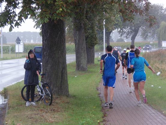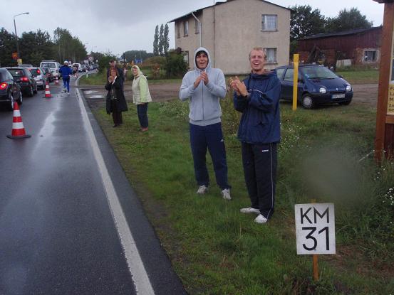 Streckelsberg / Koserow Kilometer 24 / 12.41 Uhr Und ein ganz paar Fans hatten wir dann doch, auch wenn ich glaube, es handelt sich auch hier um Strecken- posten. So ganz einfach waren die nicht zu erkenne, da sie alle Strecken- postenjacken von anderen Marathons getragen haben. |