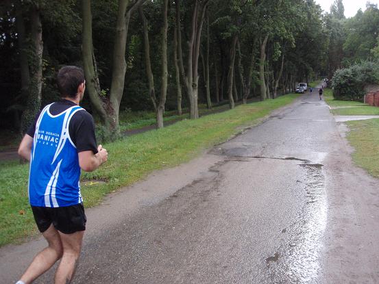 / Peene-Stadion Kilometer 42,1 / 14.13 Uhr Ich hielt mich ein wenig von der Innenbahn fern, aber auch weiter draußen war es ziemlich rutschig. Man tat sehr gut daran, nicht auf einen schnellen Spurt zu setzen. |