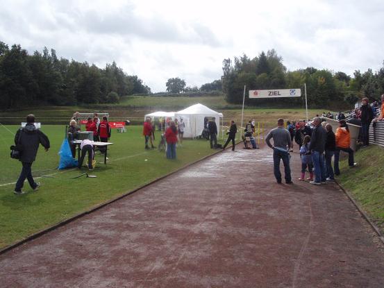 Und die Sonne kam dann auch noch. So konnten die Kinder dann immerhin auf die Hüftburg und das Bier war auch nicht mehr so wässerig, wenn man es nicht sofort trinken wollte. Obwohl eine schöne Stimmung im Stadion war, machte ich mich schon bald auf den Heimweg. Mir war kalt. Der Lauf hatte doch mehr Kraft gekostet, als ich zuerst merkte. Ach ja... meine Schuhe waren auch vier Tage nach dem Lauf noch nicht wieder trocken. |