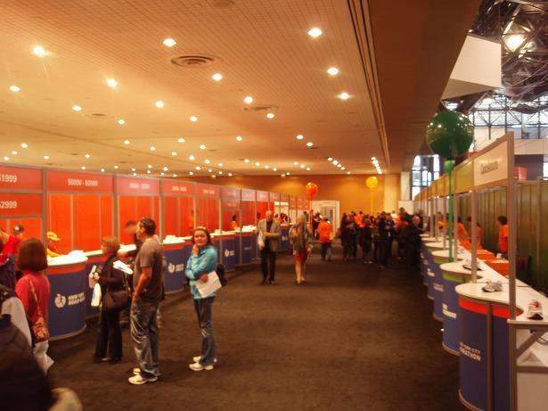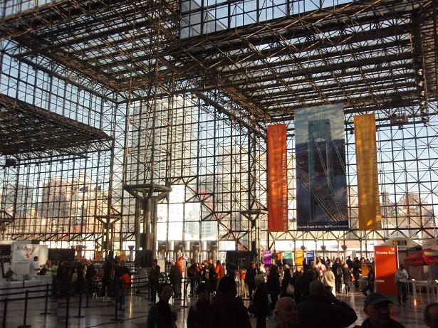 Das Javits-Center ist ein riesiger Bau am Rande des Hudson-Rivers auf Höhe des Time Squares, also gut zu Fuß in 20 Minuten zu erreichen. Es ist aber auch ein sehr regelmäßiger Bus- Shuttle-Service vorhanden. |