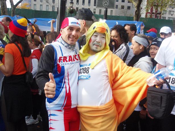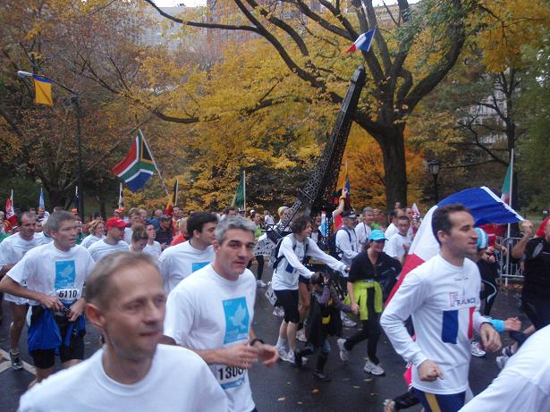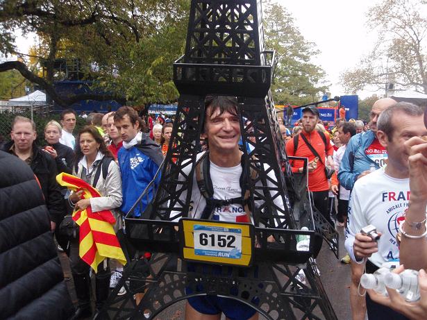 Wenn man sich einmal ansieht, wie völlig k.o. dieser Läufer jetzt schon aussieht, kann man es kaum glauben, aber er lief auch den Marathon mit dem Eiffelturm. |