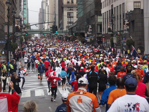 Der Lauf ist für Nicht- Amerikanische Marathon- Teilnehmer gratis. Ameri- kaner und alle, die sonst mitlaufen wollen zahlen 20 Dollar. Das ist es aber wert. |