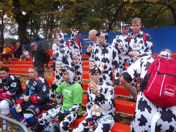 Aber alles lief einfach durchs Ziel hindurch weiter zu den Frühstücksständen circa 200 Meter weiter. Na... wer kommt hier wohl alles aus Frankreich? :-) |