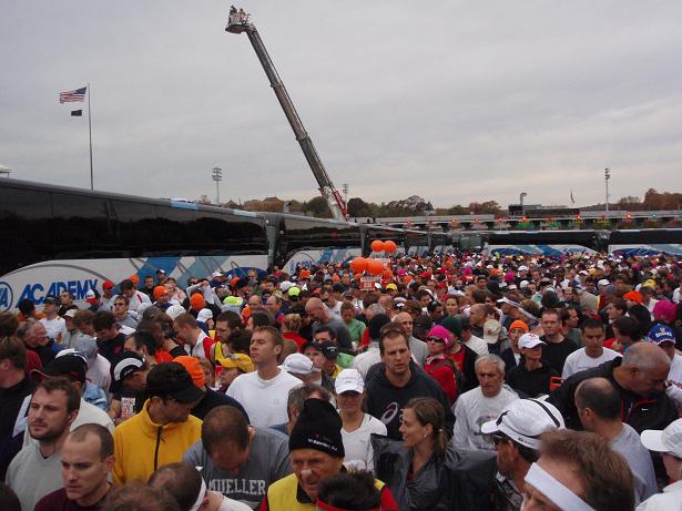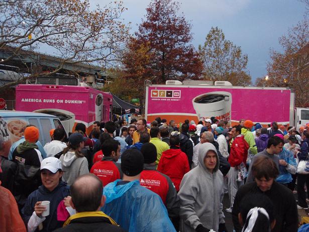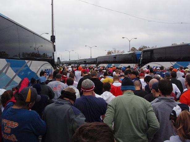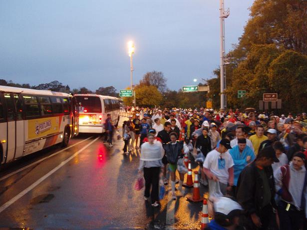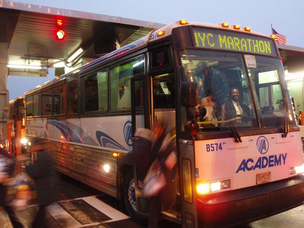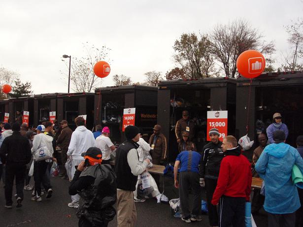 Die vielen Busse, die die Läufer nach Staten Island gebracht hatten, dienten nun als Wegmarkierung. Und für viele Läufer auch als Pinkelwand. |