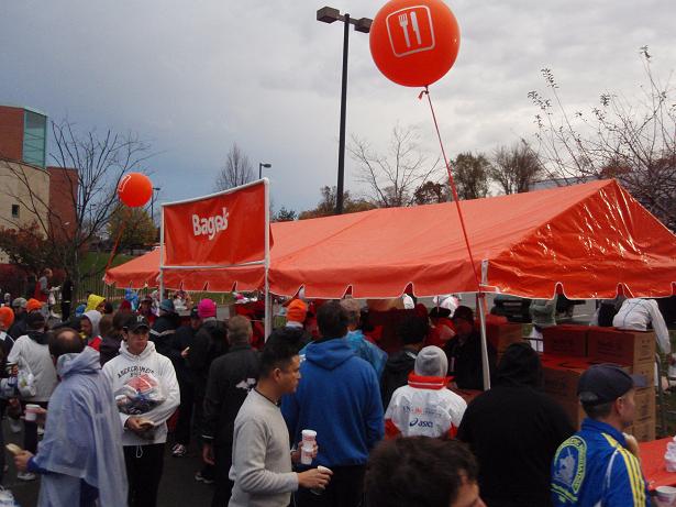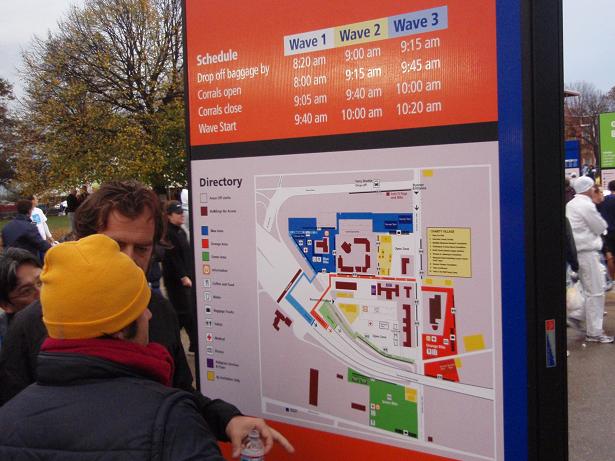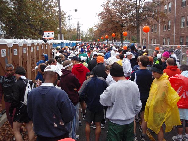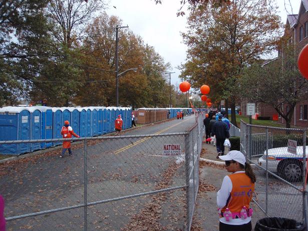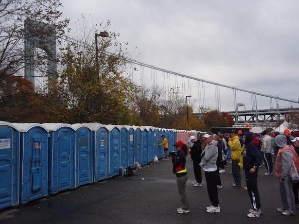 Zu meinem Erstaunen gab es fast keine Wartezeiten an den Toiletten. Bei anderen Marathons wartet man sich da zu Tode und selbst im Katalog des New York Marathons wird vor möglichem langem Warten gewarnt. Im Gegensatz zu so ziemlich allem anderen musste man aber an den Toiletten kaum warten. |