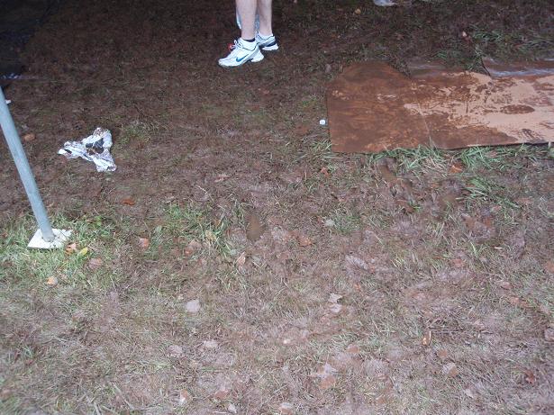 So sah der Rasen aus, obwohl es gar nicht so sehr viel geregnet hatte. Das Wasser kroch einem in die Schuhe, wenn man nicht aufpasste. Am Besten war es, man blieb in Bewegung und stand nicht zu lange an einem Punkt. |