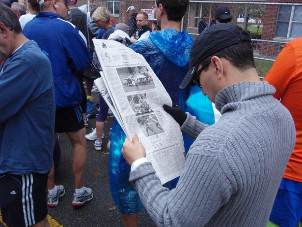 Manch einer blieb selbst kurz vor dem großen Lauf noch cool. Zeitungen sind eben nicht nur zum drauf Herumsitzen gedruckt. |
