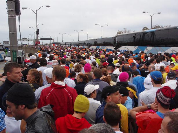 Zu Hunderten fuhren die Busse vor uns luden die Läufer-Massen ab. Viele kamen auch mit der Fähre rüber. Alles war genau festgelegt, wann wer wie anreisen sollte. |