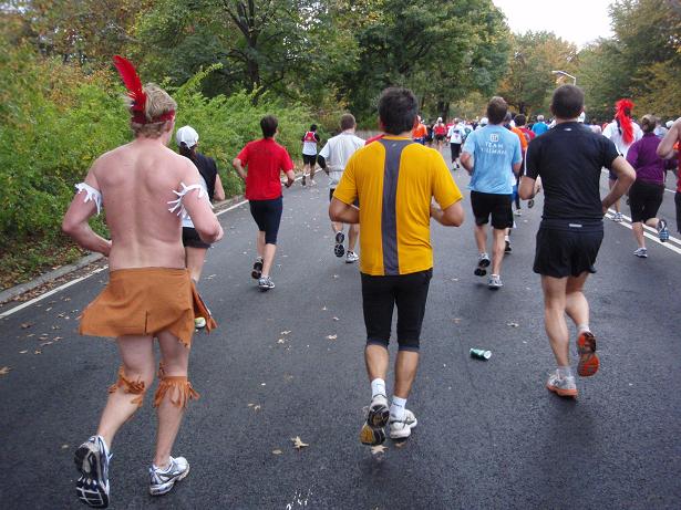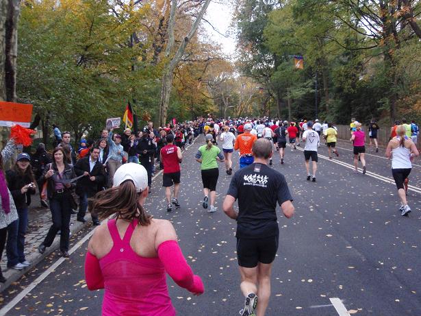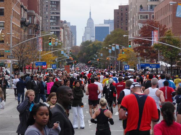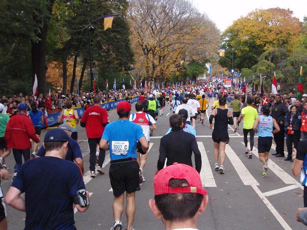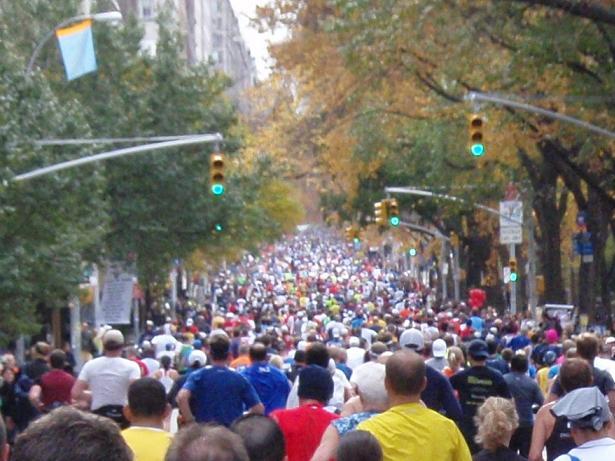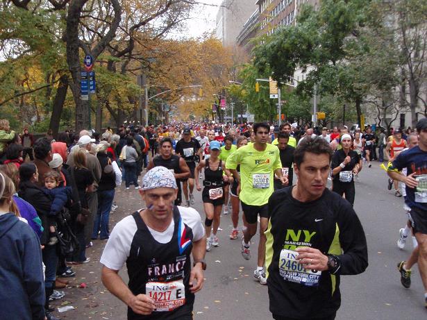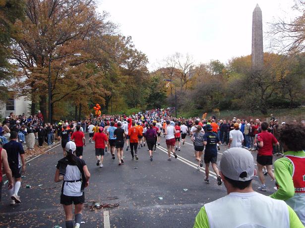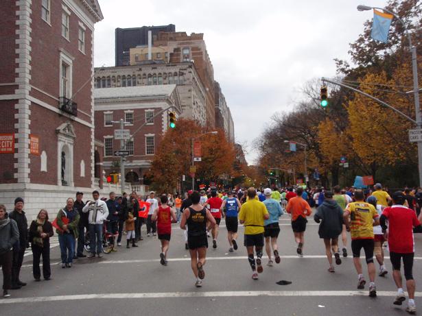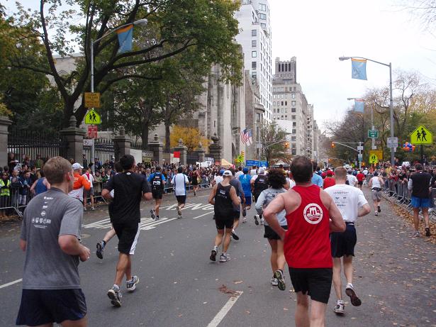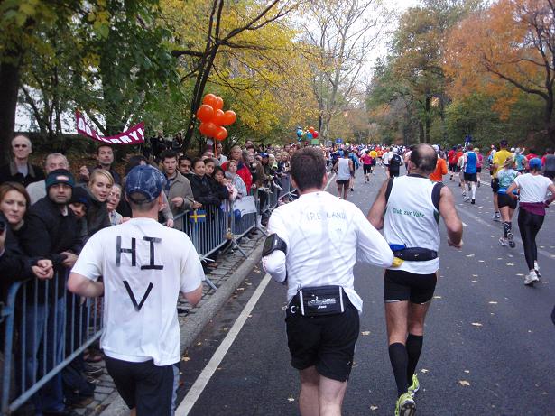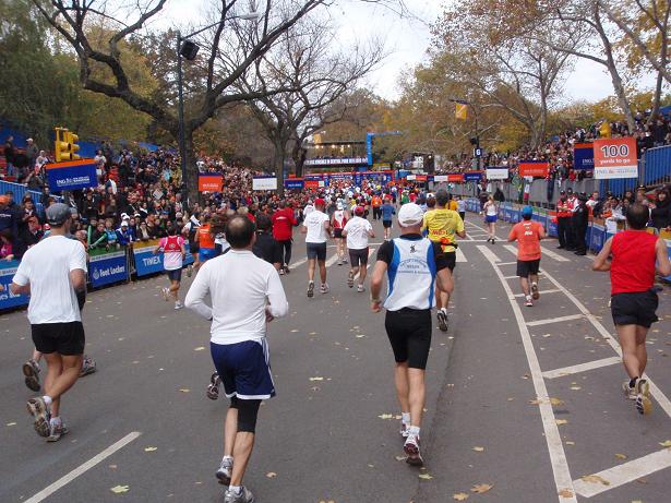 Nicht nur ich kämpfte mich hier die Steigung hinauf. Auch die anderen Läufer bekamen hier das Beißen. Wie schon mal erwähnt: New York ist kein ganz einfacher Kurs. |