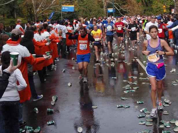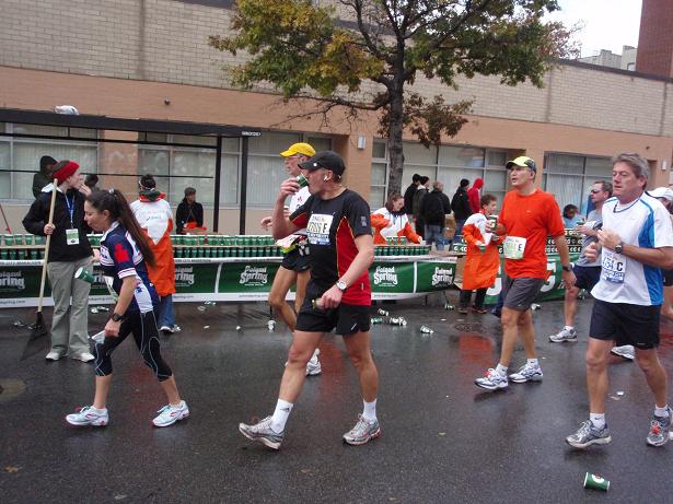 Endlich wieder etwas zu trinken. Viele Läufer waren hier schon zu Gehern geworden. Ich trabte mein Tempo weiter. Motto: Gehen nur beim Trinken fassen. |