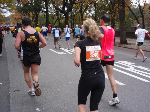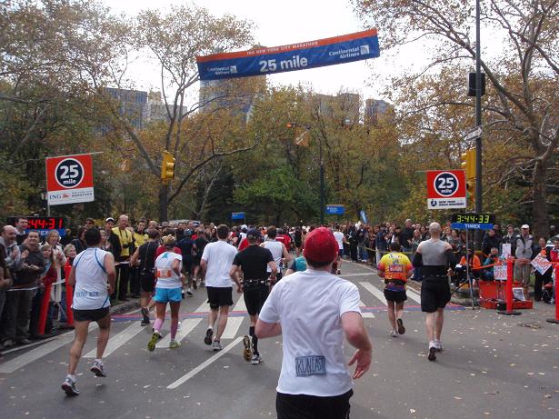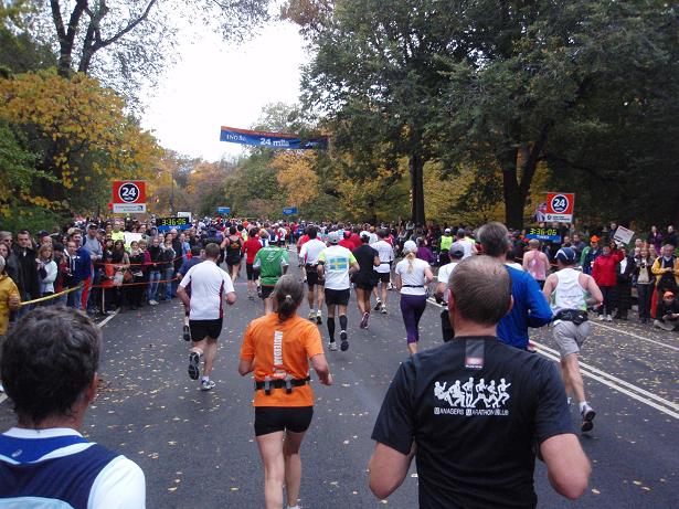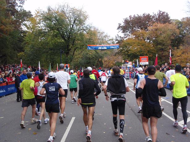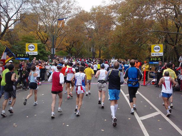 East Drive / Central Park (Höhe 68th Street) Kilometer 40 war geschafft. 3:41:16 Stunden, also gute 55:05 Minuten auf den vierten zehn Kilometer (5:31 Min/Km) und 27:01 Minuten auf den letzten fünf Kilometern (5:24 Min/ Km). |