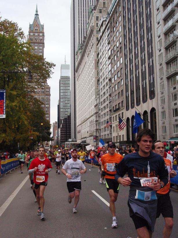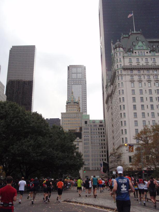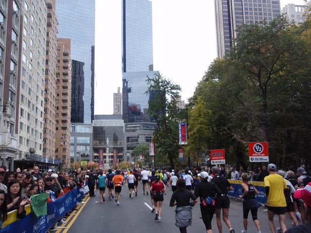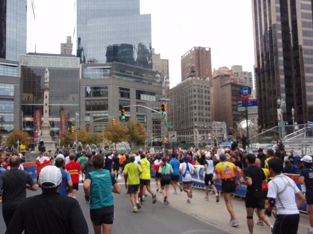 Noch eine halbe Meile bis ins Ziel. Keine Frage, der New York Marathon ging wirklich seinem Ende zu. Vor uns der Columbus Circle mir dem Time Warner Center. |