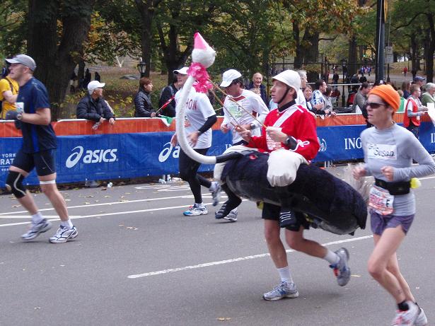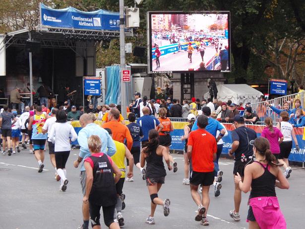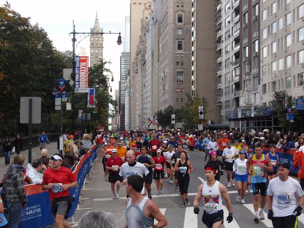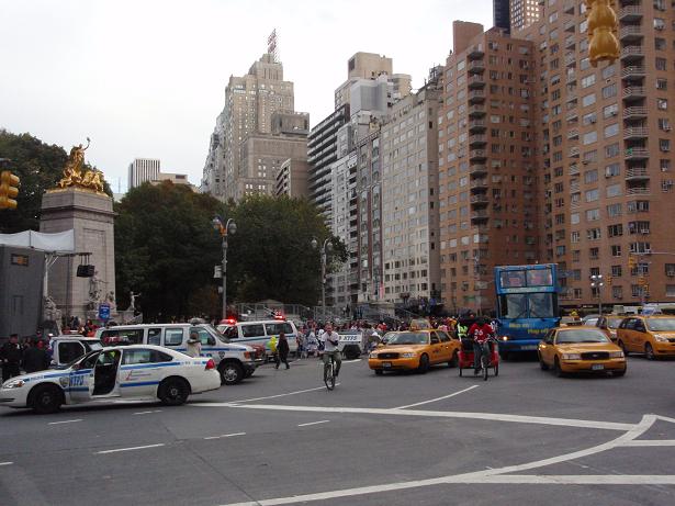 Aus der Eighth Avenue und dem Broadway kommend quälte sich der Verkehr durch das Nadel- öhr neben dem Kurs des Marathons. |