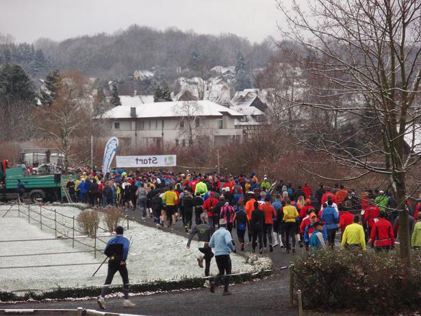 Siefenhoven Kilometer 0,0 / 10.00 Uhr Endlich der Start. Kurz vor dem Schuß hatte man uns noch mitgeteilt, daß der Kurs nicht wie laut Ausschreibung 550 Höhenmeter hätte, sondern 700. Das wollte man aber nicht schon zu früh verraten, weil sonst ja keiner käme. Interessante These für einen lange vor Meldeschluß ausgebuchten Marathon. |