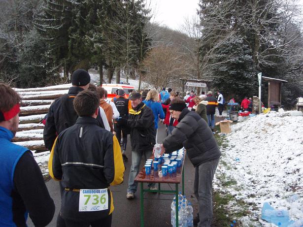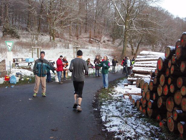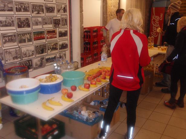 Aegidienberg, 15.32 Uhr Die Zielverpflegung war sehr gut. Tee und heiße Brühe und Coca-Cola und jede Menge Obst gab es umsonst. Dazu konnte man noch ein großes Kuchenbuffet und Würstchen und belegte Brötchen gegen Bezahlung kriegen. |