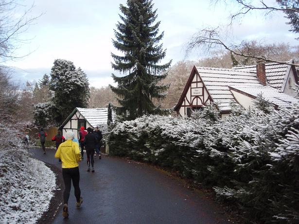 Merkenshöhe Kilometer 9 / 10.54 Uhr Sowas hätte ich in Hamburg auch gerne. Also nicht zum Marathon, der ja immer Ende April stattfindet. Aber so mal im Winter... das hätte doch was. |