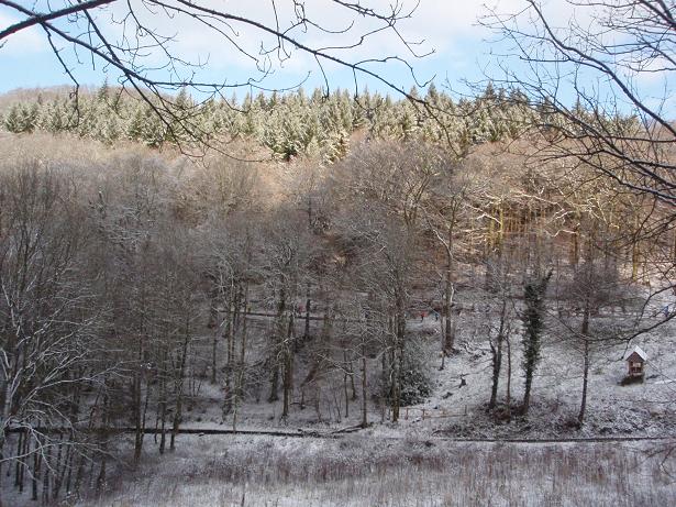 Löwenburg Kilometer 14 / 11.21 Uhr Hier zog die Steigung wieder an, aber im Vergleich zur Steigung Richtung Lahr war es hier eher erholsam. Und immer noch die schöne winterliche Landschaft rund herum. |
